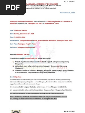 Invitation Letter To Telanganites To Participate In Telangana 10k Run Social Entrepreneurship Entrepreneurship